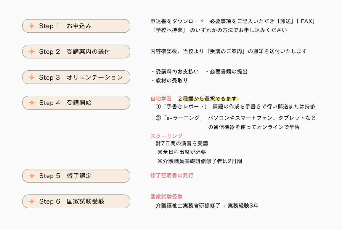 | 介護職員初任者研修 ホームヘルパー2級 ※当校にて受講された方対象 | |