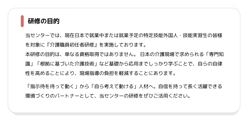 外国人の方向け介護職員初任者研修